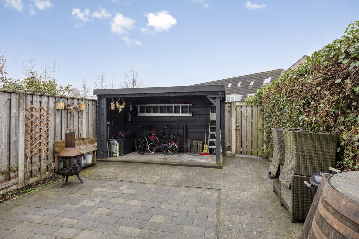 - Onderhoudsvrije, zonnig gelegen achtertuin met berging voorzien van elektra en dubbele deur